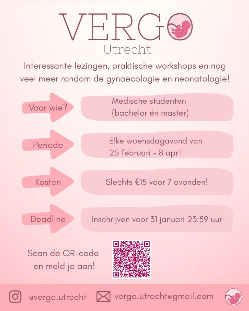 VERGO-Utrecht is actief sinds het academisch jaar 2025-2026. Jaarlijks organiseren zij een cursus over de gynaecologie en de neonatologie gericht op geneeskunde studenten die studeren aan het UMC Utrecht. Daarnaast organiseren zij workshops en open lezingen voor die toegankelijk zijn voor iedereen. Al deze activiteiten worden grotendeels georganiseerd in samenwerking met artsen, onderzoekers en studenten in het UMC Utrecht.
